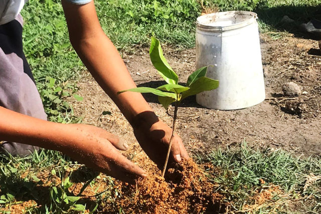 Por ello, este viernes correspondió el turno a la escuela primaria Organización de las Naciones Unidas (ONU), ubicada en la colonia Francisco Villa, donde se plantaron más de 50 árboles de kerpys, roble y almendros.