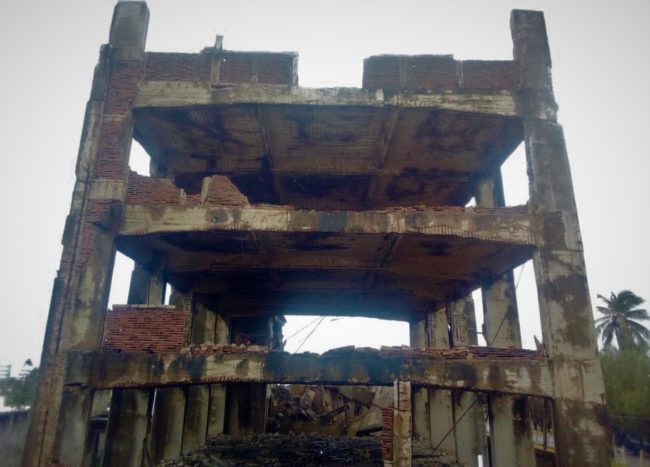 En tanto, la parte colapsada presenta fallas por esbeltez en las bases de las columnas, así como en los empotramientos entre columnas y trabes; esta misma estructura, provocó daños en la barda perimetral que colinda con el domicilio ubicado en el lote número 2 y en el lote marcado con el número 1, a pesar de esto no se registraron personas lesionadas o pérdidas humanas.