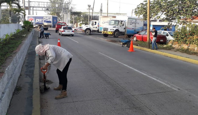 Coatzacoalcos, Ver.- Con el apoyo de más de 100 trabajadores, el Ayuntamiento de Coatzacoalcos, a través de la Secretaría de Obras Públicas y Desarrollo reforzó las tareas de limpieza en las entradas y salidas de la ciudad.