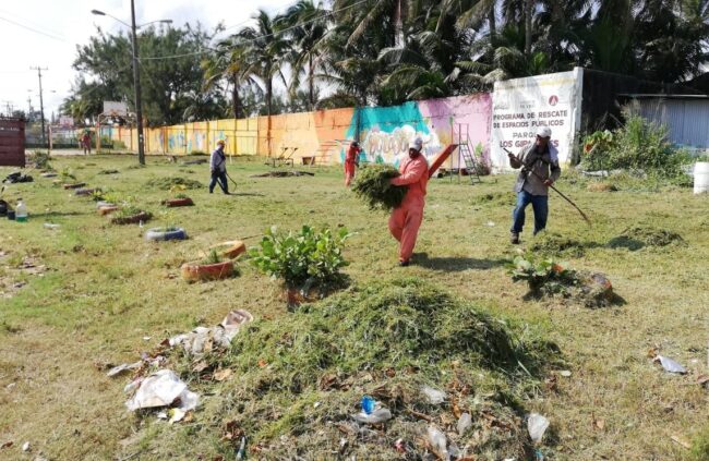 En este espacio recreativo, cuadrillas de trabajadores de la Dirección Municipal del Deporte realizaron la poda manual y mecánica, ya que tenía maleza muy crecida y residuos sólidos que representaba un riesgo para las familias; ateniendo de esta manera la cancha de usos múltiples, la zona de juegos infantiles y demás áreas verdes.