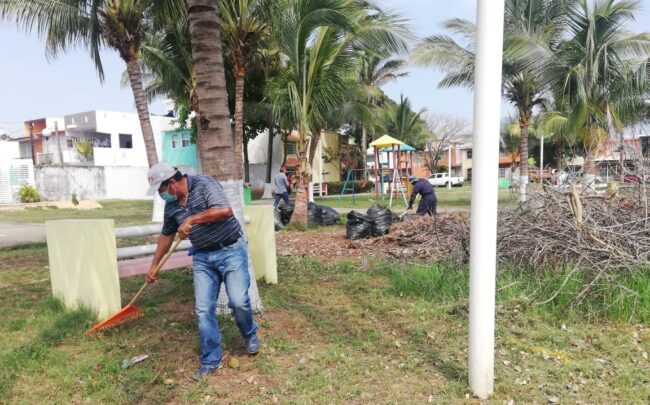 Coatzacoalcos, Ver.- De manera conjunta, personal del Gobierno Municipal y habitantes del fraccionamiento Paseo de Las Palmas, llevaron a cabo trabajos de rehabilitación en el parque deportivo ubicado en dicho asentamiento.