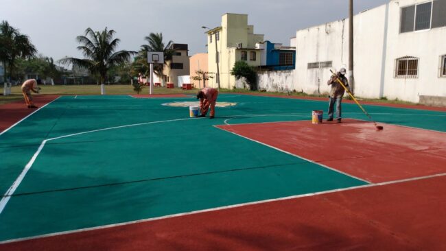 Coatzacoalcos, Ver.- Para beneficio de los habitantes del fraccionamiento Paseo de Las Palmas, el Ayuntamiento de Coatzacoalcos, a través del Comité Municipal del Deporte, llevó a cabo trabajos de mantenimiento en la cancha de básquetbol de ese asentamiento.