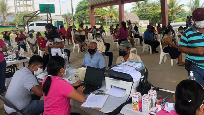Coatzacoalcos, Ver. – La Gerencia de Responsabilidad Social de Petróleos Mexicanos y el Ayuntamiento de Coatzacoalcos, a través de la Dirección de Salud Pública Municipal han unido esfuerzos para llevar a la zona rural las jornadas médicas de salud, a través de la Unidad Médica Móvil, con la cual hasta el momento se han atendido 769 personas e inmunizado cerca de 100 niños con la vacuna triple viral.