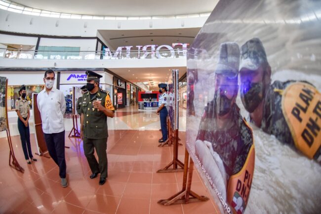 Fue esta mañana, en Plaza Forum, en donde las autoridades asistentes inauguraron una exposición fotográfica que permanecerá hasta el 13 de julio en ese recinto. La misma consiste en 22 imágenes que muestran la historia de los desastres naturales desde 1965 y la gran labor de los elementos del Ejército Mexicano para ayudar y salvaguardar a la ciudadanía en momentos críticos.