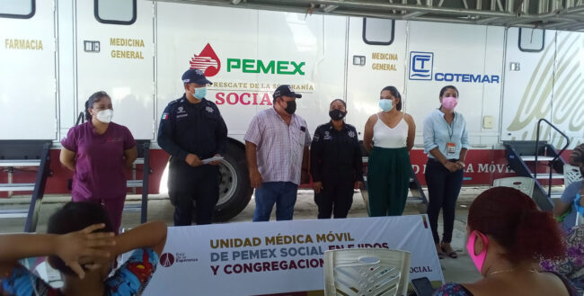 Coatzacoalcos, Ver. – La Unidad Médica Móvil de Petróleos Mexicanos culminó su penúltima jornada de atención en la zona rural del municipio en Villa Allende donde se atendieron a 456 personas en dos días y se vacunaron a 143 pobladores entre adultos y niños.