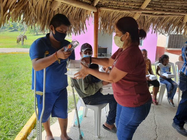 Las viandas contenían chuletas ahumadas y spaghetti blanco, además de una bebida, las cuales se distribuyeron en completo orden y guardando todas las medidas sanitarias correspondientes ante la pandemia por COVID-19.