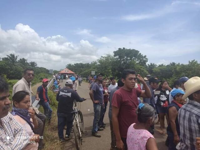 Pajapan, Ver. a 12 de Julio de 2021. Elementos de la Fuerza Civil y Policía Estatal, este lunes por la mañana disolvieron una manifestación que realizaban pobladores de la comunidad de Minzapan, quienes avanzaban hacia la planta de agua denominada “Bocatoma”.