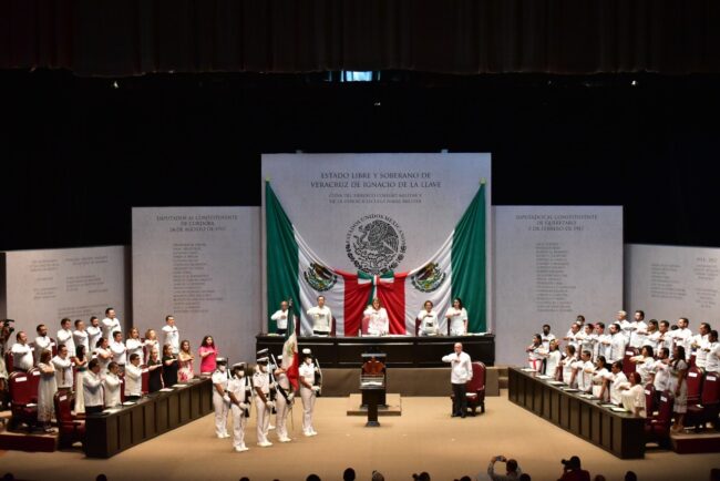 “Nos constituimos aquí los tres poderes públicos de Veracruz, para dar testimonio de la grandeza de este pedacito sureño que nos llena de orgullo, alegre de ser una ciudad pujante, dinámica y en franca transformación, llamada a ser un nuevo puente de comercio entre las dos cuencas oceánicas más importantes quizá del mundo”, puntualizó el Gobernador.