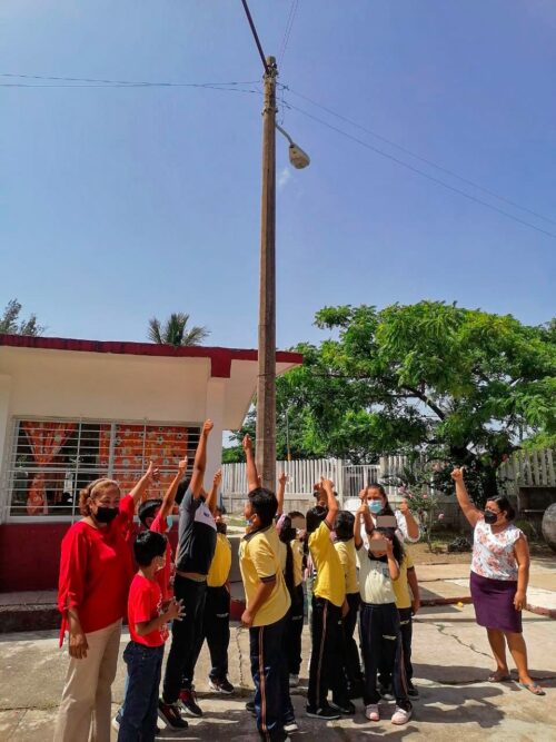 Coatzacoalcos, Ver., 19 de junio de 2022.- Habitantes de la congregación Las Barrillas y de la colonia Sector Popular recuperaron la luz en sus colonias y la seguridad al caminar por sus calles, luego de que el Gobierno Municipal que preside Amado Cruz Malpica, a través la Subdirección de Alumbrado Público rehabilitara las luminarias de sus sectores.