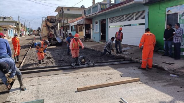 También, como parte de la rehabilitación de drenaje sanitario que se lleva a cabo en la avenida Quevedo de la colonia Puerto México, realizaron el colado el cual forma parte del proceso de la obra para ser entregada en breve a los vecinos de este sector.