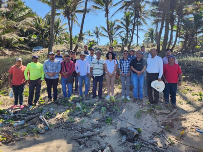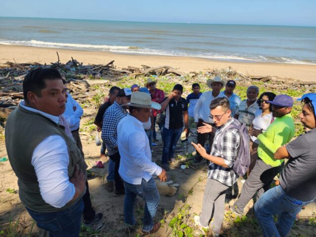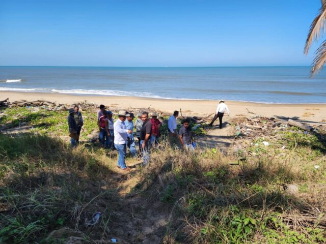 Coatzacoalcos, Ver., 18 de enero de 2023.- Autoridades del Gobierno de Coatzacoalcos que preside Amado Cruz Malpica, recorrieron junto a funcionarios de la Semarnat el “Campamento Tortuguero” en el ejido Guillermo Prieto, donde iniciaron los trámites para dar certeza legal al trabajo que realizan pobladores en este lugar.