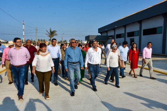 Acompañado de los integrantes de su comuna edilicia; la Diputada Federal, Flora Tania Cruz Santos y el Secretario General del Sindicato Nacional de Trabajadores de la Industria Química, Petroquímica, Isaac Maya Pérez; el alcalde realizó el corte de listón como parte del protocolo inaugural.