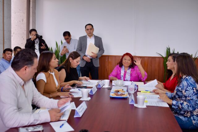 En el Palacio Legislativo celebraron sesión de trabajo las diputadas y los diputados Victoria Gutiérrez Pérez, presidenta, Guadalupe Vázquez González, secretaria, Ana Rosa Valdés Salazar, María Elena Córdova Molina, Luz Alicia Delfín Rodríguez, Juan Tress Zilli y Luis Vicente Aguilar Castillo, vocales.
