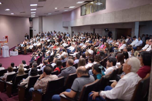 En el auditorio Sebastián Lerdo de Tejada del Palacio Legislativo se realizó este acto el cual registró la asistencia del rector y exrectores de esta casa de estudios y miembros del Sindicato Nacional de Trabajadores de la Educación (SNTE).
