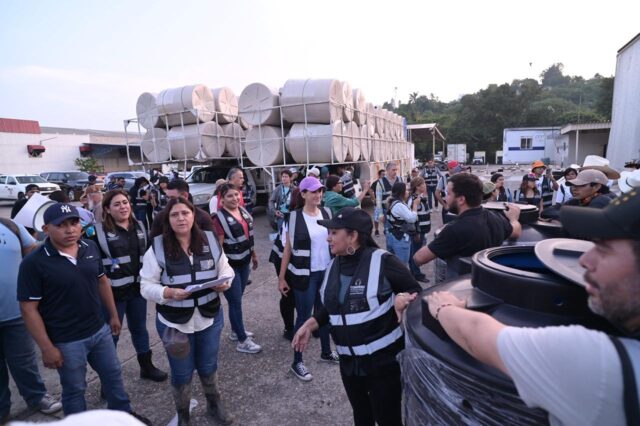 Xalapa, Ver., 20 de octubre de 2025.- Más de 10 mil despensas, siete mil kits de limpieza, y mil tinacos entregaron diputadas y diputados locales en los municipios de Coatzintla y Poza Rica, donde se sumaron a los trabajos de limpieza, remoción de escombros, descarga y entrega de apoyos a las personas damnificadas por las recientes lluvias.