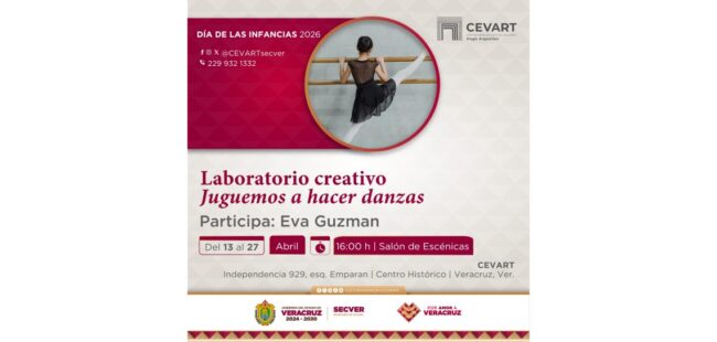 Xalapa, Ver., martes 07 de abril de 2026.- La Secretaría de Cultura de Veracruz (SECVER) invita a la serie de laboratorios creativos y seminarios en torno a la danza, que se llevarán a cabo en el Centro Veracruzano de las Artes Hugo Argüelles (CEVART), en la ciudad de Veracruz, en el marco del Día Internacional de la Danza. La entrada es libre.