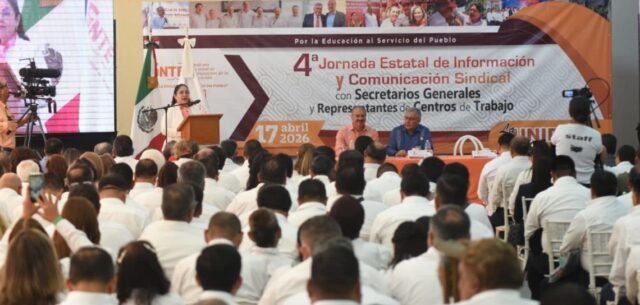 Xalapa, Ver., viernes 17 de abril de 2026.- Durante la 4ª Jornada Estatal de Información y Comunicación Sindical de la Sección 56 del SNTE, autoridades de la Secretaría de Educación de Veracruz (SEV) y representantes sindicales destacaron la coordinación institucional como eje para fortalecer el sistema educativo en la entidad.
